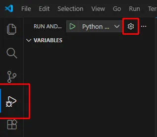 (1) Switch to the "Run and Debug" view and click the gear icon.