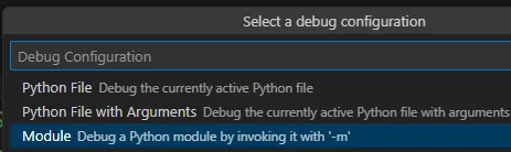 (3) From the displayed menu, select "Python Debugger" → "Module".