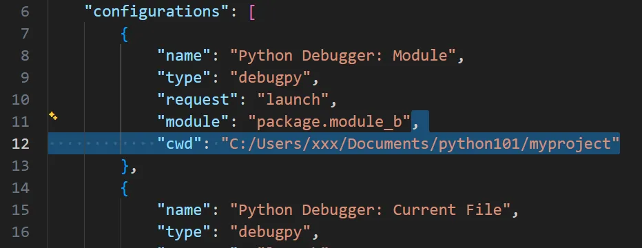 "cwd": "C:/Users/xxx/Documents/python101/myproject"